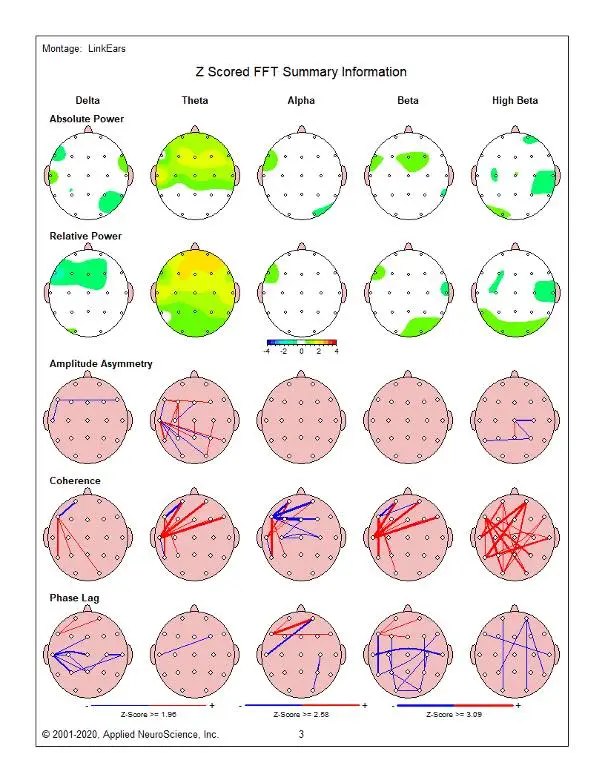 N.B. Please refer to the first two rows in the 1st and 2nd QEEG scans (1st scan is before and 2nd is after IEMT respectively).